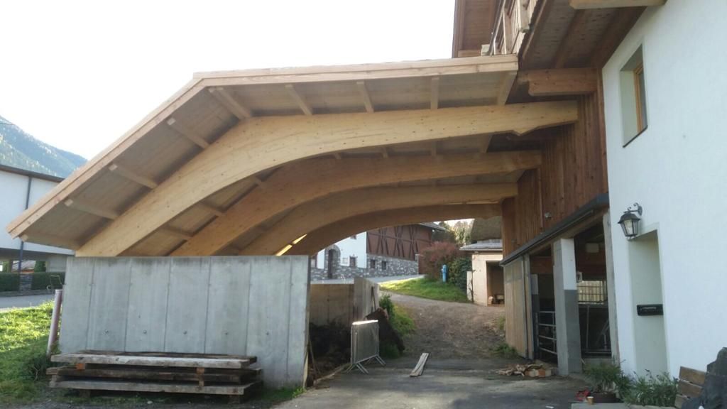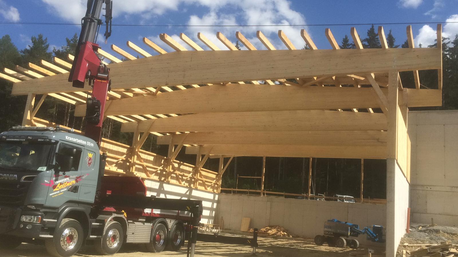 Ob für große Hallen für den Maschinenpark oder für Ställe – die Vielfalt an Konstruktionsmöglichkeiten mit Holzträgern erlaubt es, auch große Räume zu überspannen, ohne die hohe Gewichtslast von Stahlträgern aufzuweisen.