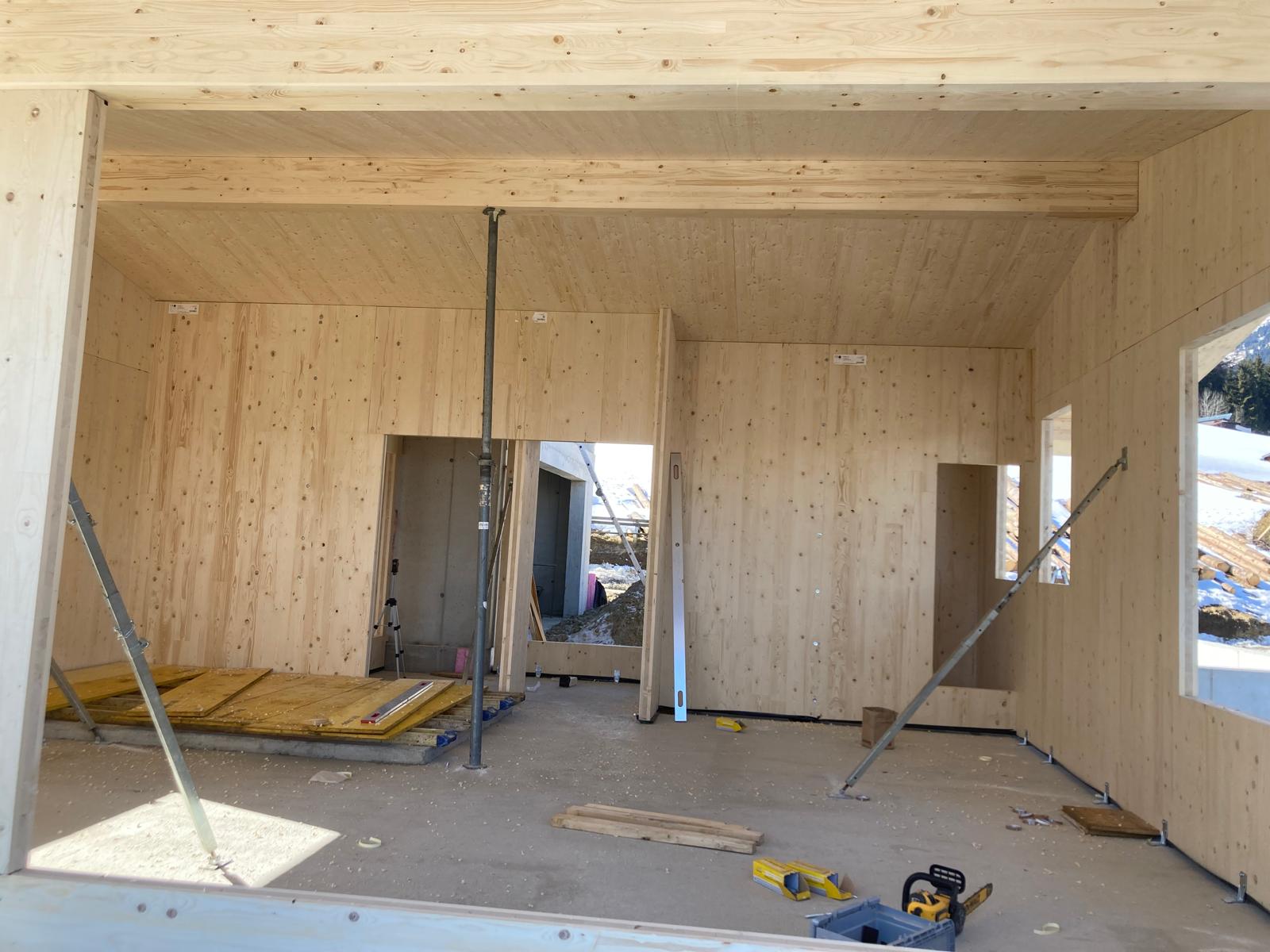 Sie haben einen Einreichplan? Dann überlassen Sie den Rest uns. Wir verwenden im Massivholzbau holzverleimte Platten von mindestens 10 cm Stärke, die jedes Haus tragen können. Durch unsere Zusammenarbeit mit Partnerfirmen für Fenster, Türen und Fassadensysteme für den Vollwärmeschutz sowie für die Dacheindeckung und die Spenglerarbeiten kümmern wir uns um alles bis auf die Estrich- und Verputzarbeiten.